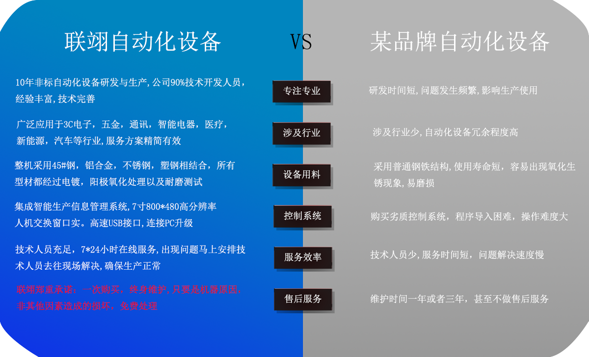 以后再說X東莞市聯(lián)翊智能設(shè)備科技有限公司創(chuàng)于2012年,專業(yè)研發(fā)制造自動組裝機,自動裝配線等非標自動化設(shè)備.